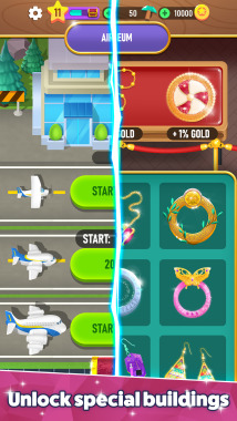 Store isn’t everything. After you’re done upgrading you can expand! Build more stores, to create a real jewelry empire. Come up with the right strategy, build the right building and craft even more! Upgrade your vault, put historic pieces in museum and compete in fashion contests. Move through the entire town, discover even more levels and craft even better jewelry! Can you become a real jewelry emperor?